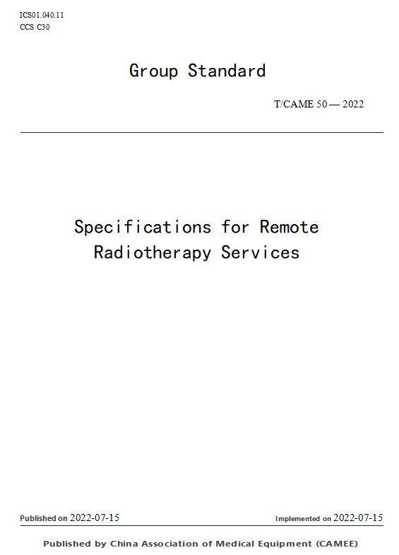 《遠程放射治療服務(wù)規(guī)范》團體標準外文版...